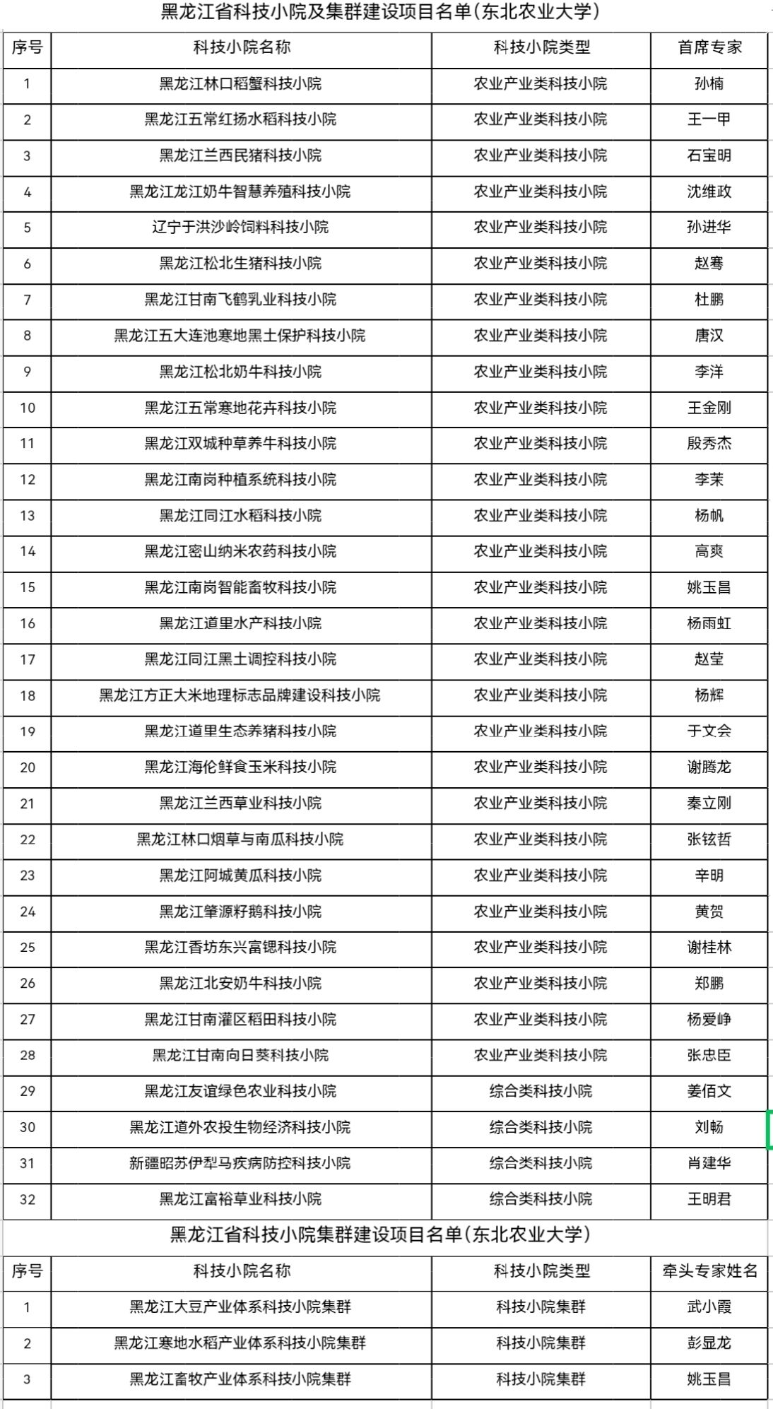 近日,黑龙江省教育厅发布《关于备案省级科技小院及集群建设项目的通知》,确定备案100个省级科技小院和10个省级科技小院集群建设项目。我校凭借深厚的农业学科积淀、强劲的科研创新实力及扎实的社会服务基础,32个科技小院及3个集群成功获批省级建设项目,涵盖农业产业类、综合类等多个领域,获批数量与覆盖范围在全省高校中位居首位,彰显了学校在服务黑龙江“四个农业”发展中的核心支撑作用。
